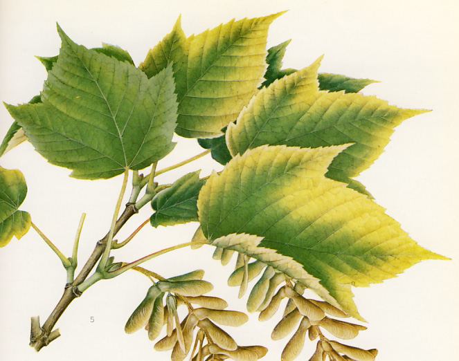 Leaves are opposite, palmately 3-5 lobed, duplicately serrulate.