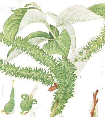 Leaves are alternate, densely tomentose and glaucous beneath.