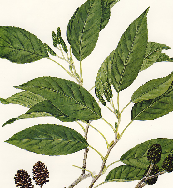 Leaves are alternate, elliptical to oblong-lanceolate, deep green and lusterless above.