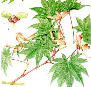It grows in the cool temperate mountains. It is resemble to Acer shirasawanum, but its leaf is smaller, thiner and less hairy beneath than that of Acer Shirasawanum.