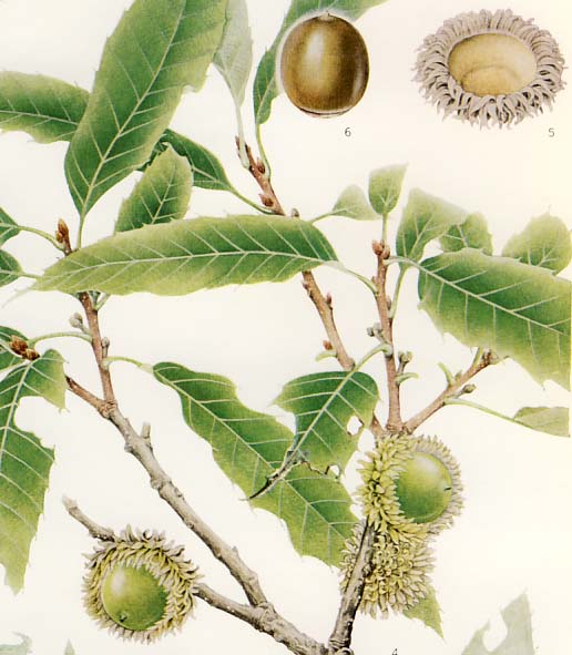 Leaves with small petiole are alternate, aristate-serrate, glabrous beneath.