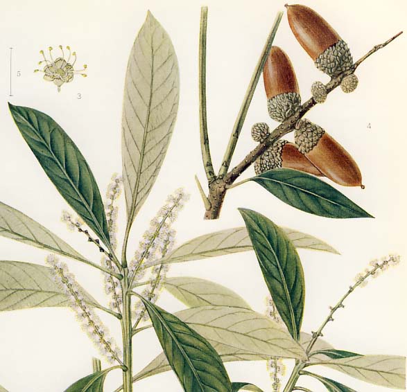 Leaves are alternate, deep green and lustrous above, dull greyish green with minute dense scales beneath.