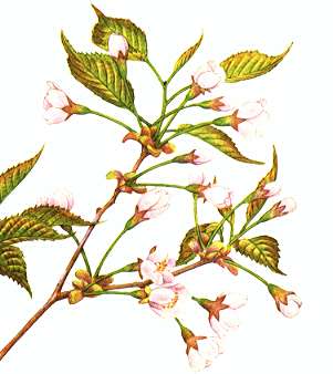 Leaves are alternate, ovobate, duplicately serrate, acuminate at the apex.