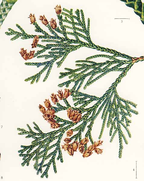 Leaves are scale-like, obtuse at the apex with deltoid white stomate and are gigger than Hinoki.