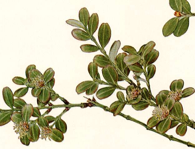 Leaves are opposite, obovate, coriaceous, entire on the margin, deep green and lustrous above.