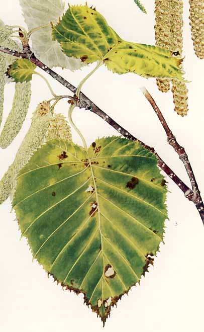 Leaves are alternate, large, deeply cordate at the base, yellowish green beneath.